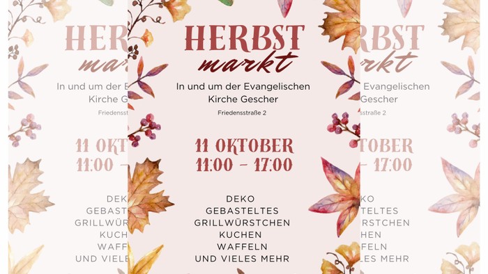 Gescher. (pd) Am Samstag, 11.10., findet von 11 Uhr bis 17 Uhr ein bunter Herbstmarkt an der Evangelischen Gnadenkirche statt. Von Kinderschminken über Klebetatoos zu Handarbeiten, Bilder und der rollenden Waldschule gibt es viele Angebote. Auch für das leibliche Wohl ist gesorgt, denn fleißige Helfer aus der Gemeinde gestalten ein Kuchenbuffet während die Konfirmanden selbst gebackene Waffeln anbieten. Markus Lanfer aus Hochmoor betreibt den Grillstand mit Lammbratwurst und herkömmlicher Grillwurst. Für den Nachmittag ist ein Lagerfeuer geplant, an dem Jung und Alt bei Stockbrot und gemeinsamen Liedern zusammenkommen können. Heike Ebbert-Brüggemann, die die Idee zu diesem Herbstmarkt hatte, hofft natürlich mit allen ehrenamtlich Helfenden auf gutes Wetter. „Sollte das Wetter aber nicht passend sein, werden alle Stände und Aktivitäten in die Kirche und das Gemeindehaus verlegt", sagt Ebbert-Brüggemann. .