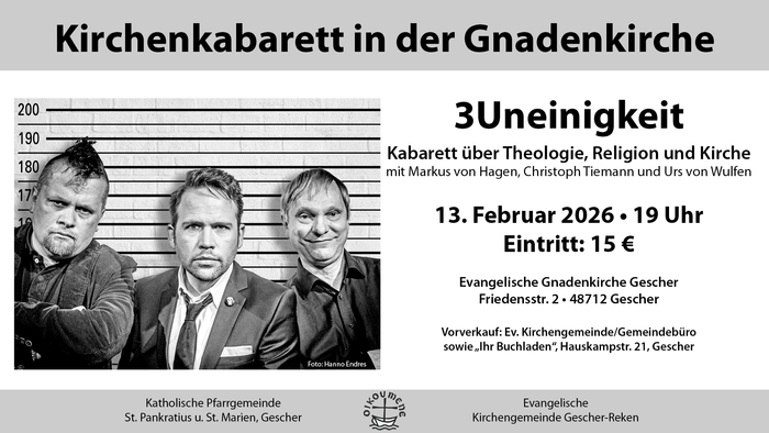 Auf Einladung des Ökumenekreises in Gescher kommt 3Uneinigkeit nach Gescher in die Ev. Gnadenkirche am