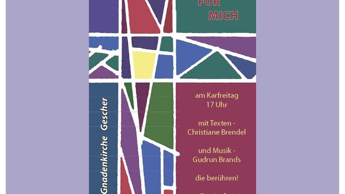 Zeit für mich heißt es wieder am Karfreitag um 17 Uhr in der Evangelischen Gnadenkirche am Prozessionsweg. Gudrun Brands und Christiane Brendel haben besinnliche Musik und Texte ausgesucht, die den Besuchern einen Ausblick auf Ostern bieten. Der Eintritt ist frei, über eine Spende freut sich die Kirchengemeinde.